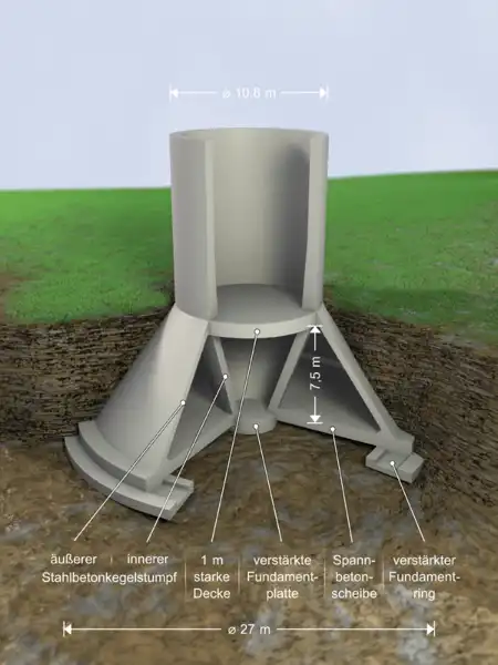 Известный немецкий инженер-строитель и архитектор Фритц Леонхардт (нем. Fritz Leonhardt) решил придать уже существующим стальным конструкциям телевышек более изящный вид. Так появилась первая железобетонная башня. Кстати, именно по совету господина Леонхардта количество опор у Останкинской телебашни увеличили с 4-х (по первоначальному проекту) до 10-ти.