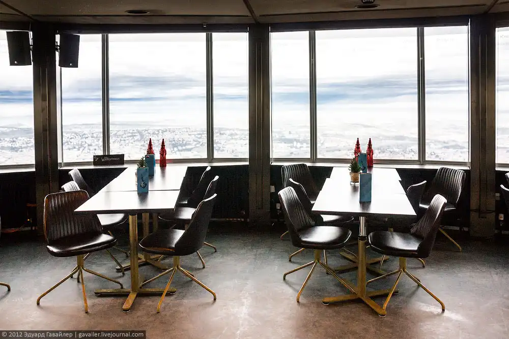 «483 метра» на предыдущей фотографии обозначают высоту установки башни над уровнем моря. Ретро-столики и кресла: