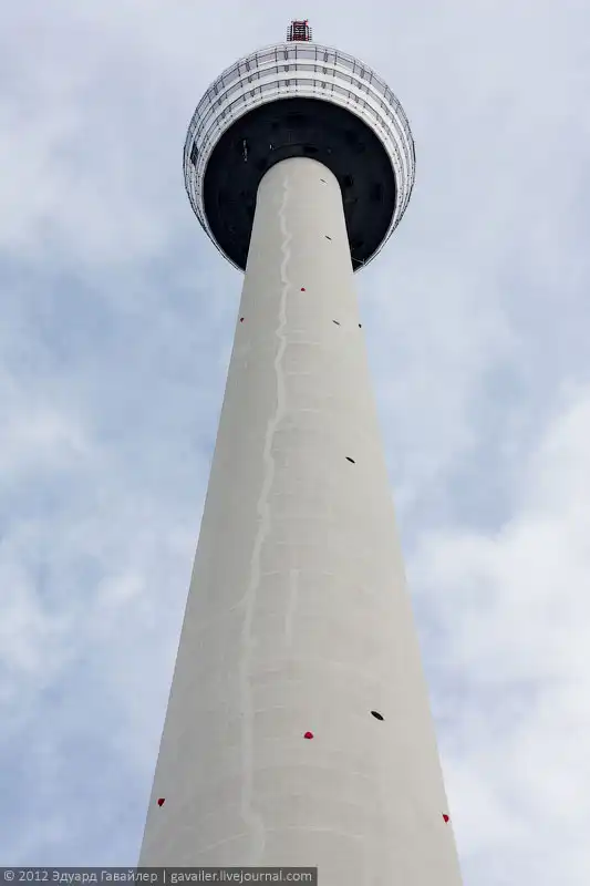 При строительстве первой башни из бетона в 50-х годах не было учтено тепловое расширение материала при перепадах температуры. Из-за этого в свое время на башне появилась трещина.