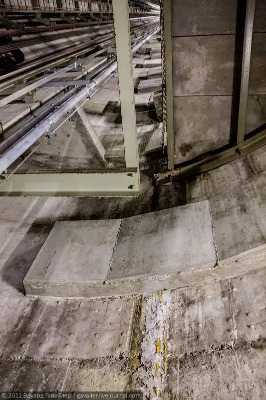 Спускаемся под землю, в фундамент строения. Его общая высота около 8 метров. Основной вес башни приходится в центр, дополнительное внешнее кольцо обеспечвает дополнительную устойчивость при колебаниях.