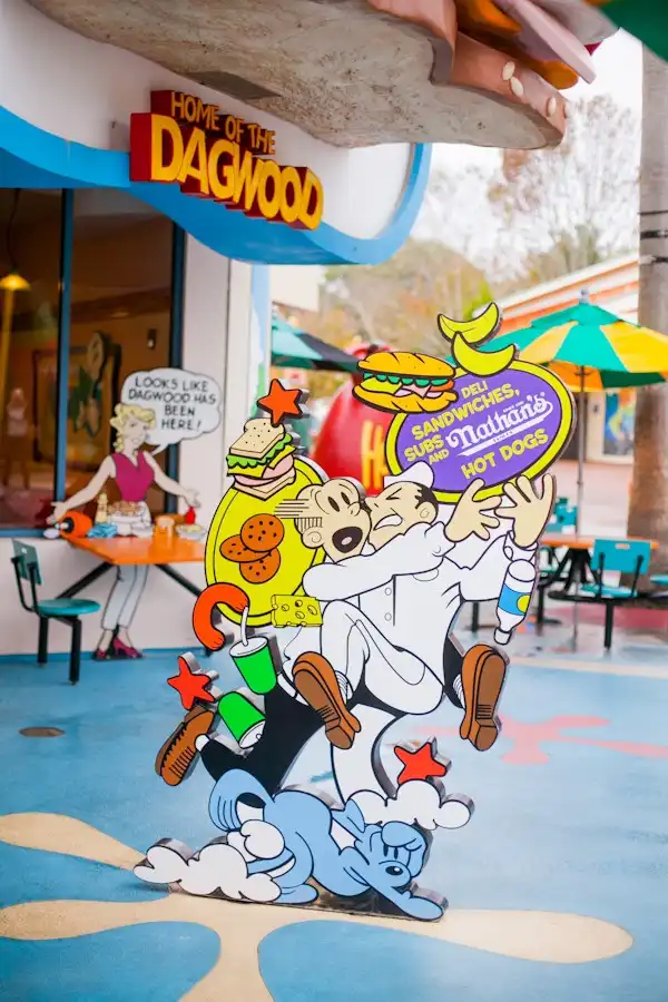 В каждой зоне есть кафе, магазины и пр. стилизованная под тематику)