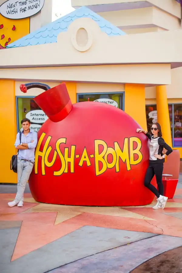 Следующая зона, куда мы так торопились - The Simpsons! Она небольшая, но с 4D аттракционом, который нам понравился - полный эффект присутствия в Спрингфилде)