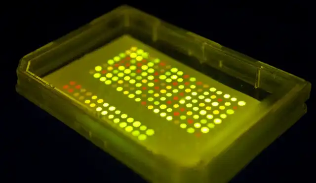 Массив бактерий вместо массива лампочек, и не нужно никакого электричества, только химические реагенты (фото Manuel A. Palacios/Tufts University).