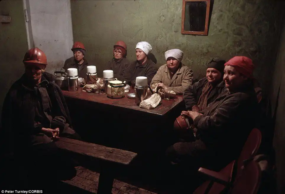 Женщины шахтеры отдыхают после смены в городе Новокузнецк в июне 1991 года.