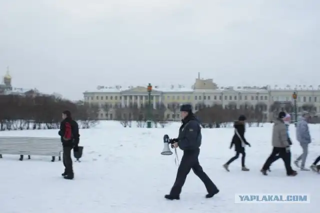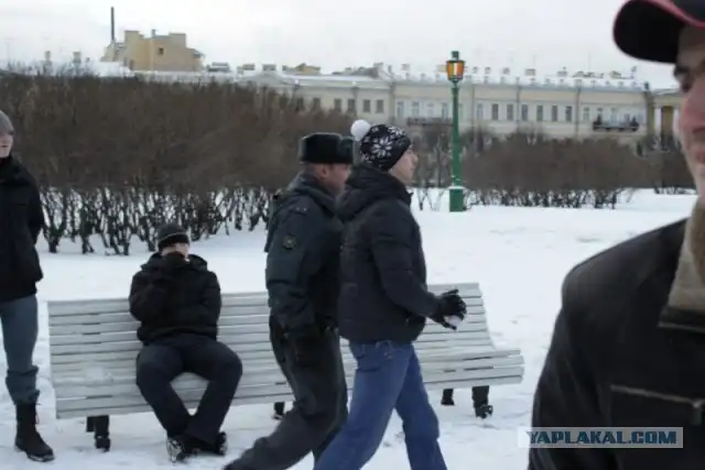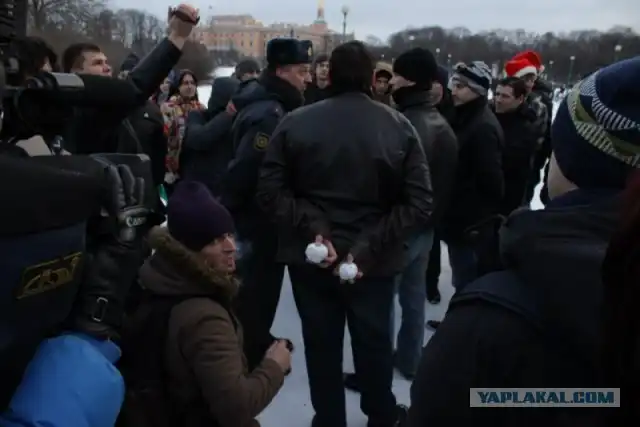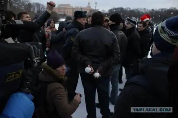 Несколько молодых людей попытавшихся объяснить стражам порядка, что это не политическая акция, а обычный флешмоб, были задержаны. После этого акция сразу закончилась, и молодежь начала расходиться. Символическая акция «Снежная битва» проходит в Петербурге не первый год, однако ранее она не привлекала внимание полиции.