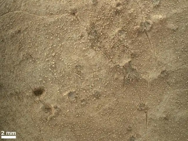 APXS расположен на манипуляторе, поэтому одновременно с ним образец исследуется при помощи камеры MAHLI, которая не перестает удивлять качеством детализации изображений.