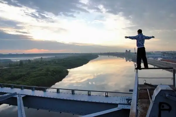 Видеозаписи моих восхождений появились благодаря друзьям, решившим снять ролик на память о лете. Хотелось, чтобы фильм был каким-то особенным. Я предложил запечатлеть подъем на 16-этажный дом. Проект мы назвали «Мои покорения». Я не сомневался в успехе. Ведь по стене здания до верхнего этажа проходит газовая труба. По ней и поднимался. Страха не чувствовал. Думал только о том, какое движение выполнить в следующее мгновение. Кстати, я совершил несколько подъемов на это здание. В первый раз трижды отдыхал, ныряя в щель между стеной и трубой. Поэтому руки совершенно не устали. В следующие разы двигался без остановок. Сложности возникали на самом верху. Дело в том, что от того места, где заканчивается труба, до крыши еще несколько метров. Поэтому ребята сбрасывали мне сверху веревку, и последний участок я преодолевал по ней"
