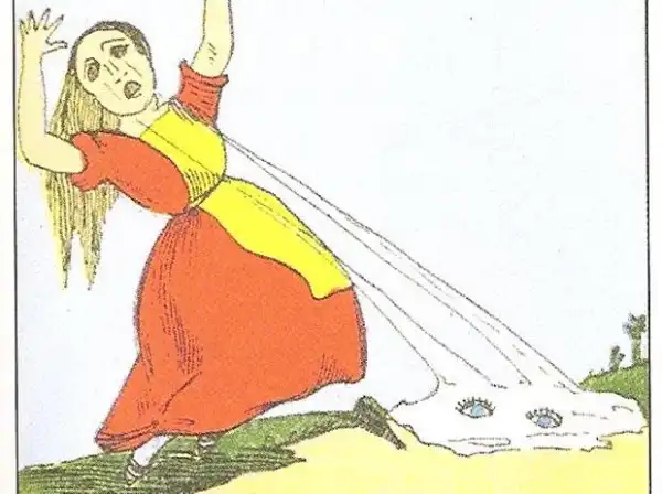 Ещё один шедевр доктора Гофмана, вошедший в сборник «Бетси-Неряха» был опубликован в 1911 году. Мама честно предупреждает дочь-плаксу, чтобы она не капризничала, но та не желает ничего слушать и продолжает заливаться слезами. Плакала она, плакала, да и выплакала все глаза – остались одни пустые глазницы.