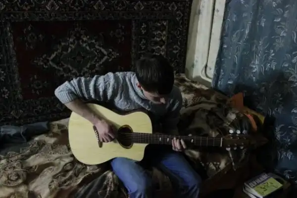 И сам автор, погруженный в игру. Звук получился очень даже ничего, для первой то гитары)))