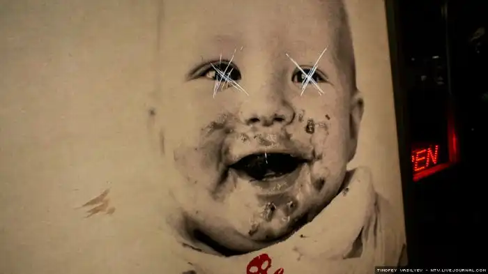 Еще деталь – уличное искусство на рекламе кафе, самой по себе достаточно *банутой.