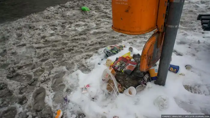 Рядом кто-то намусорил стаканчиком из под кофе, а сами горожане проявляют