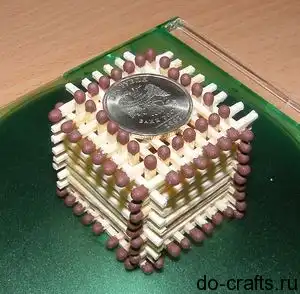 3-й шаг: два настила (первый – из 8 спичек, второй – из 6 спичек) завершат наш каркас. Каркас прижимается монетой. Как сделать замок из спичек, чтобы он не развалился и был более прочным? Для этого Вам понадобится по всем четырем углам поставить спички. И затем повторить такое же действие по всему периметру спичечного замка.