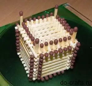 5-й шаг: затем переворачиваем замок «вниз головой» и начинаем строить стены, вставляя вертикально спички по четырем сторонам. Алгоритм повторим еще раз, только спички будем выкладывать уже горизонтально. После проведенных процедур над нашей спичечной архитектурой замок обжимаем еще раз.