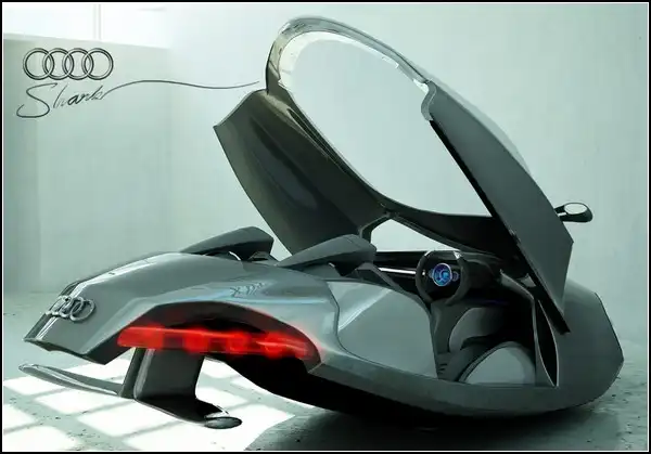 Летучий концепт-кар Audi Shark должен рассекать дороги будущего, опираясь на воздушную подушку (судя по всему, в виду имеется экранный эффект). Дизайнеры очень постарались передать "философию дизайна Audi", но не подумали о наших бедных потомках, которым придется рулить таким транспортным средством, которое обещает быть практически неуправляемым. Впрочем, оно и не взлетит, пока не будет открыта искусственная гравитация.