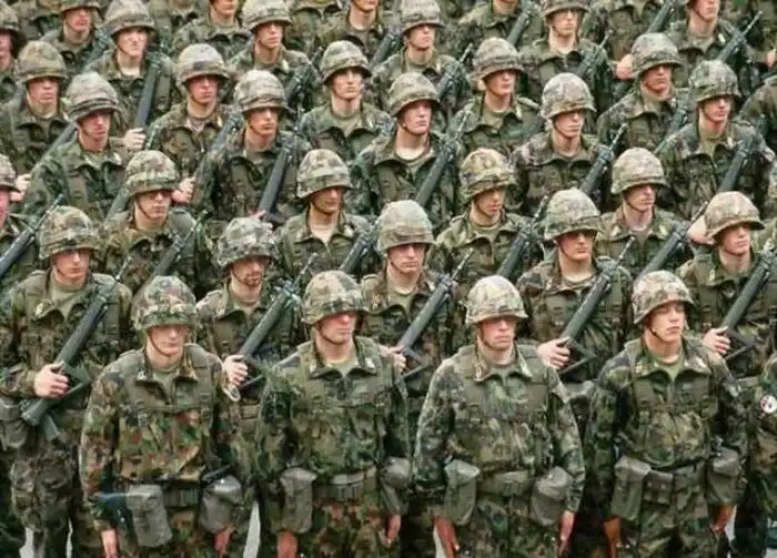 Кадровых военных в стране всего около 9000, в основном в авиации. Находящихся на службе и переподготовке – порядка 10-15 тыс единовременно. Солдат призывается на 90 дней в т.н. Rekrutenschule — Ecole de recrue. После окончания государство отдаёт бойцу личное оружие с двумя полными магазинами (винтовка и/или пистолет), «консерву министра», три комплекта формы на все времена года, снаряжение, бронежилет и каску, с которым он и убывает домой. Хранит он его как хочет – никто проверять не будет.
