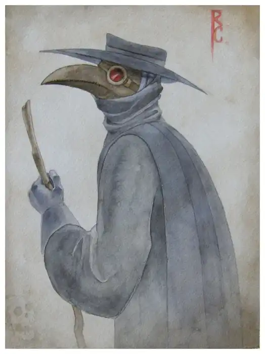 Каждая часть костюма, а именно, шляпа, птичья маска, красные стекла, черное пальто, кожаные штаны и деревянная трость, как полагают, имели важную функцию. Хотя врачи не знали, что они приносят больше вреда, чем пользы. С помощью своего наряда, а точнее пальто, в котором они ходили, они заражали больше и больше людей, потому что их одежда может быть и на время ограждала их от заражения, но сама становилась источником заражения. Ведь настоящими переносчиками вируса были клещи и крысы...
