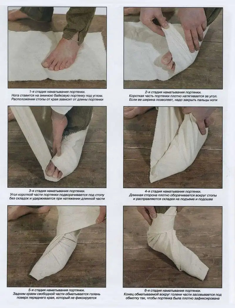 «Портянки были, есть и будут! – сообщил как-то в интервью прессе начальник Тыла Вооруженных сил генерал армии Владимир Исаков. – Потому что синтетика для ног вредная, особенно когда 30 километров пробежать в кирзовых сапогах надо. А не синтетические плотные носки нужно каждому солдату по мерке шить, либо они будут кукожиться и ноги до кровавых мозолей складками набивать. Пробовала российская армия носки, пробовала, не в каменном веке живем. Так вот, эксперименты закончились фиаско. Это всякие морпехи американские, которые на вертолетах да джипах передвигаться норовят, те могут позволить себе носками баловаться». Таково мнение армейского руководства. Зато уж один полезный навык из армии каждый из нас принести может. На девушек, например, умение мгновенно сделать себе носки из двух носовых платков производит неизгладимое впечатление.
