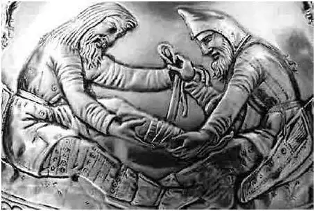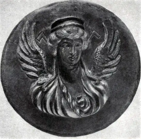 Богиня Хванинда. Бактрийский рельеф. Серебро с позолотой. Диаметр 12 см. Первая половина 2 в. до н. э.