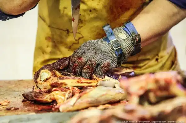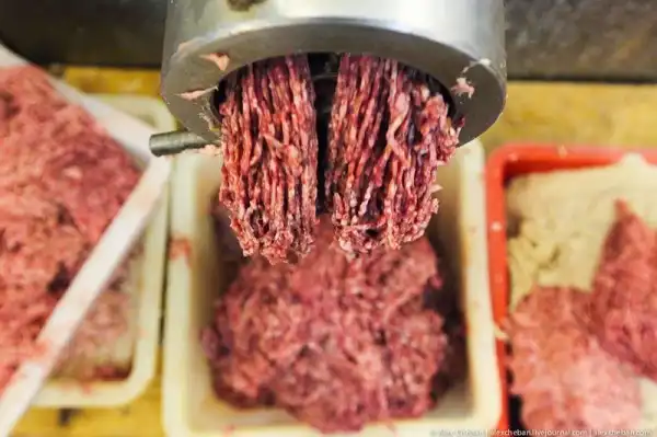 И, наконец, котлетное отделение! Нарезка разных типов мяса для формирования фарша: