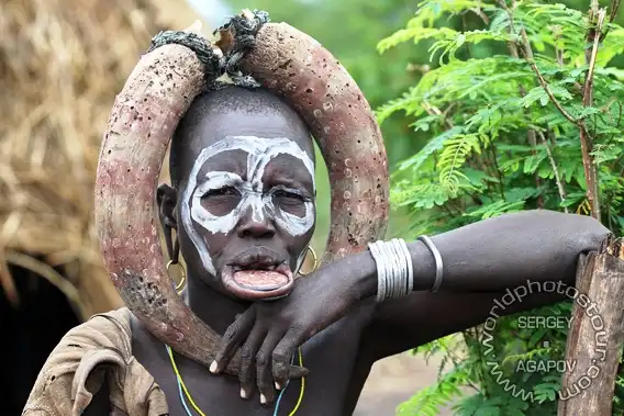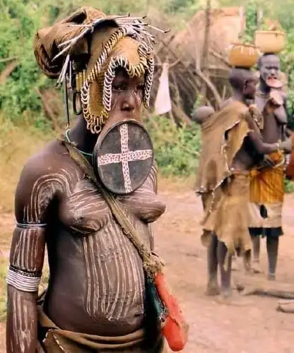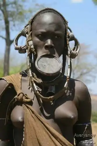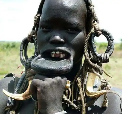 Уникальное "украшение" лица, которое они используют, является совершенно необычным, даже для диких людей. Дело в том, что ещё в юном возрасте их девочкам прорезают нижнюю губу, и начинают вставлять туда деревянные чурбачки, всё более и более крупного диаметра.