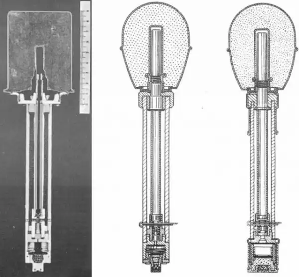 Пистолетная граната со стержнем Wurlkorper 358 LP (слева). Пистолетная граната со стержнем Wurlkorper 361 LP (в центре) и Wurfkorper 361 LP па (нового образца) (справа)