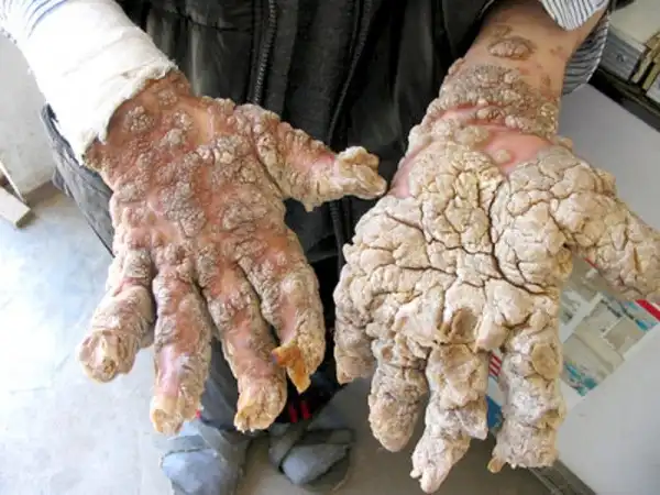 Общественность узнала об этом генетическом заболевании в 2007-м году, когда в интернете появилось видео с 34-летним индонезийцем Деде Косварой. В 2008-м мужчина перенёс операцию по удалению шести кг наростов с тела. Роговые образования были сняты с рук, головы, туловища и ног, и в эти места была пересажена новая кожа. В общей сложности удалось избавить Косвара от 95% бородавок. К сожалению, через некоторое время они снова начали расти, и врачи полагают, что операцию придётся повторять каждые два года, чтобы Косвара хотя бы мог держать ложку.