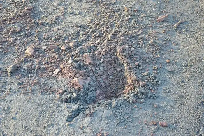 Как видно по фотографиям, дорожное полотно поначалу выглядит ровным, но если подкопнуть щебень,