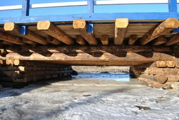 Деревянное основание моста в ручье, неминуемо сгниет и сооружение попросту рухнет в тот самый ручей.