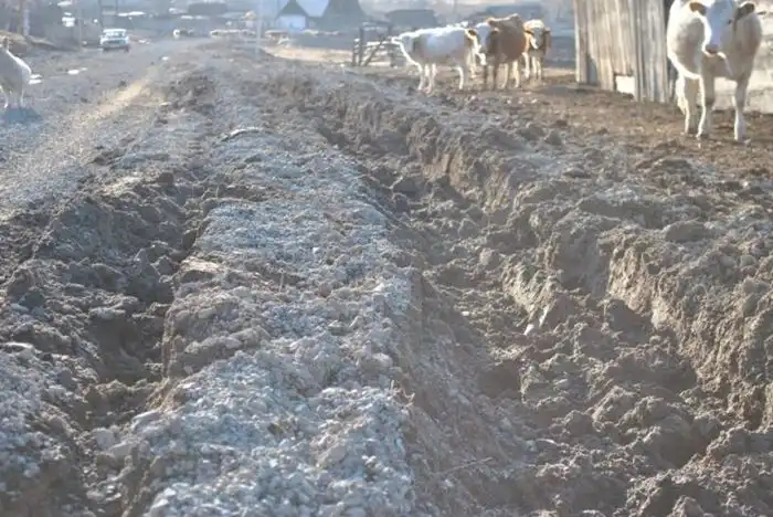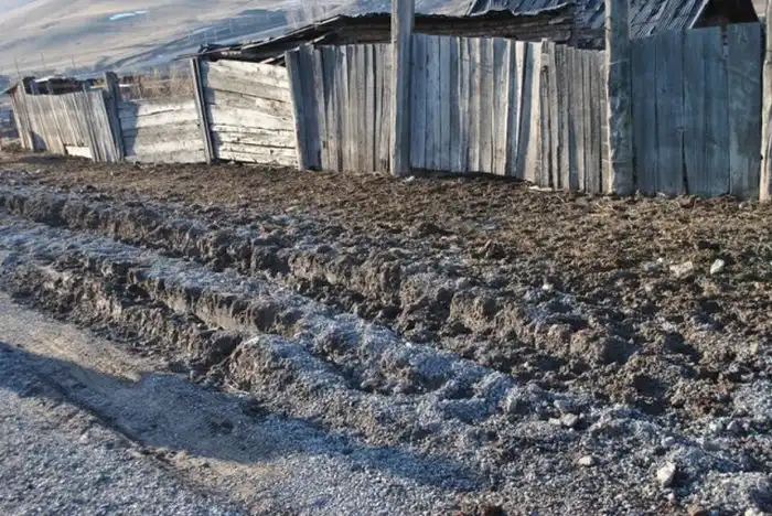 Может, удосужились у въезда в аал положить? Увы. Под небольшим слоем щебня все те же глина с песком.