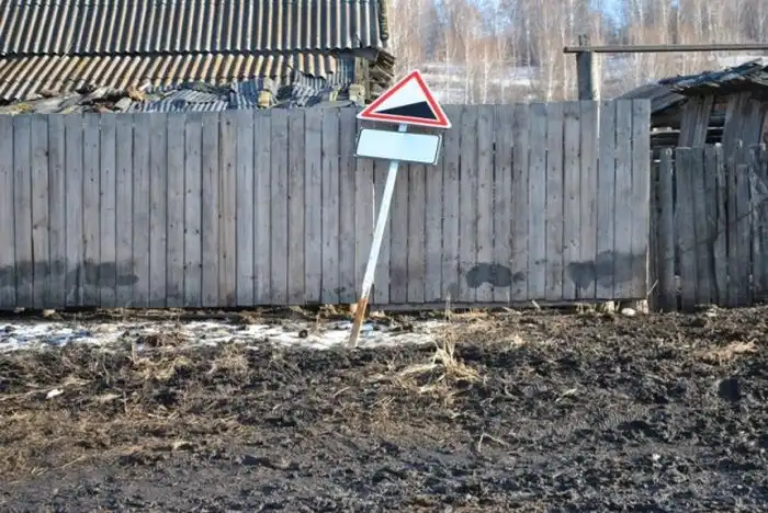 Половина дорожных знаков и указателей, которые были просто воткнуты в насыпи у дороги,