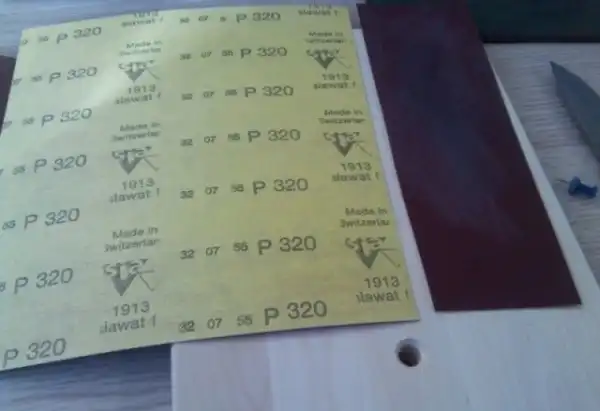 Готовим наждачную бумагу, зернистость 320 можно чуть меньше чуть больше. Отрезаем от листа полоску.