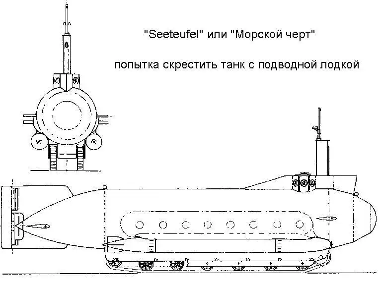 "Seeteufel" или "Морской черт" - единственный в своем роде проект. А именно - попытка скрестить танк с подводной лодкой. Разработка от 1944 г.