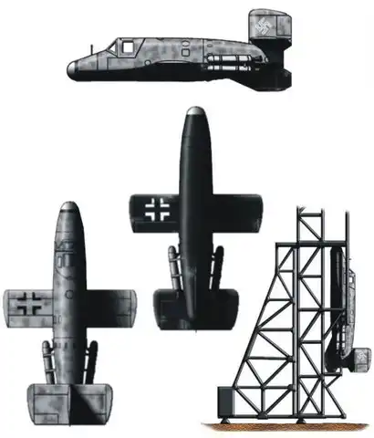 Название родительского самолета неизвестно. В документации он именовался просто "реактивный бомбардировщик проекта" (возможно, он также разрабатывался DFS, как и оставшийся на бумаге DFS-464). Наведение аппарата должно было осуществляться по телевизионному каналу или резервному радиоканалу. Система наведения заключалась в обтекатель в верхней части фюзеляжа, жидкая взрывчатка размещалась непосредственно возле передней дужки диска, несколько топливных баков располагались радиально внутри диска.