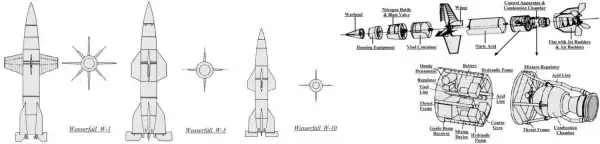 Второй прототип был несколько больше: его стартовый вес составлял 665 кг. Во время первых испытаний в Пенемюнде 11 декабря 1944 года ракета взорвалась на старте. Третий прототип с маршевым жидкостным реактивным двигателем и стартовым ускорителем "Пират" в ноябре 1944 года был доставлен в Пенемюнде, но не был испытан.