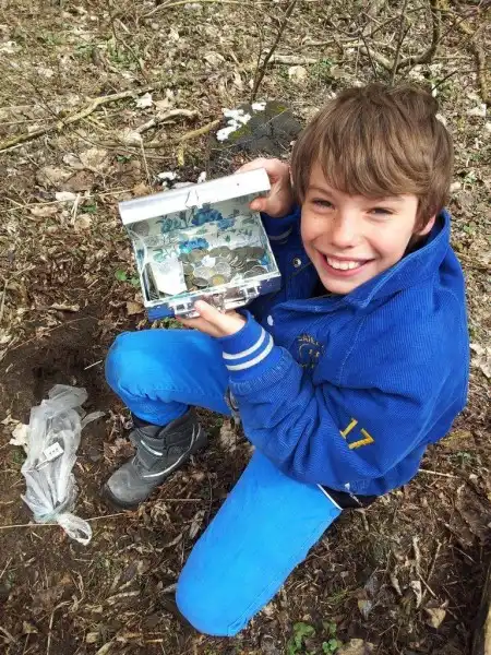 Ему потребовалось несколько минут, чтобы снять крышку и найти карту. Как только он прочитал "сокровище" на его лице появилась улыбка