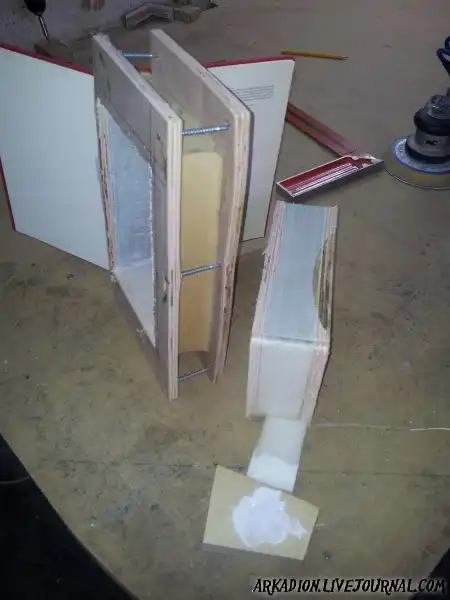 4.Самый неуклюжий и корявый и трудоемкий( ваще НЕ РЕКОМЕНДУЮ) снять после сушки фанерки нарисовать контур и ножом вырезать его.