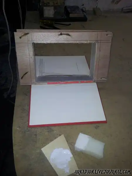 клей ПВА, кусочек поролона, шурупы , фанеру или дсп, пищевую пленку или пакет.
