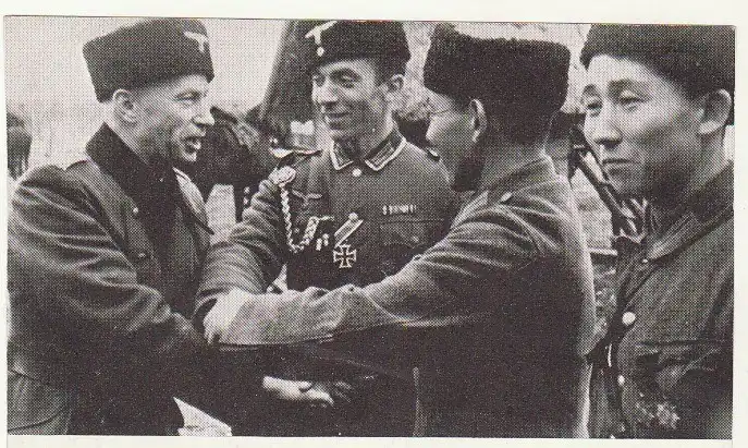 Естественно, всё это - не более, чем использование чужих сил в собственных целях. Пушечное мясо. Так ведь и власовцы - точно такое же мясо. Агитки даже прямо чуть ли не под копирку написаны, только названия народов заменены. Одним обещали свержение коммунизма, другим - независимость ("Крым для татар", "Большой Туркестан", "Вольная Казакия", "Свободный Кавказ" и т.п.), третьим - изгнание колониализма, четвёртым - джихад и борьбу за веру и т.д.