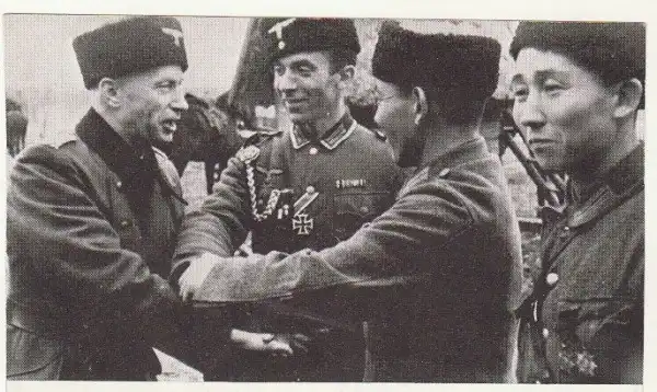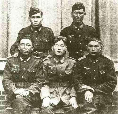 Ещё в 1941 году среди немецких солдат в большом количестве распространялись брошюры и листовки, на которых изображались советские военнопленные среднеазиаты с надписями: "Вот каковы татаро-монгольские твари! От них тебя защищает солдат фюрера".