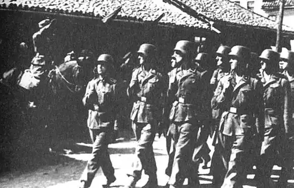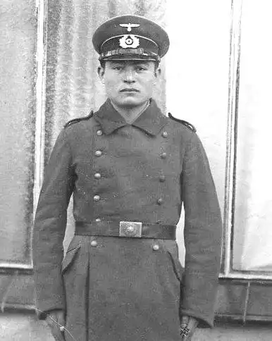 Цзян Вэйго в униформе фанен-юнкера (кандидата в офицеры) вермахта