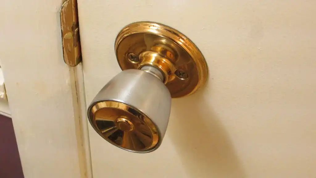 К счастью, они разработаны так, чтобы их можно было легко открыть. Внешняя часть ручки в центре имеет отверстие для ключа, что позволяет тебе ввести в него небольшой предмет (в нашем случае скрепку). Нужно подтолкнуть язычок, удерживающий защелку. После этого ты сможешь повернуть внешнюю ручку и открыть дверь.