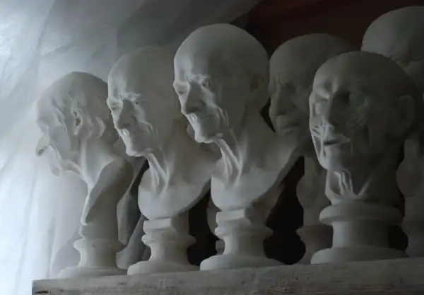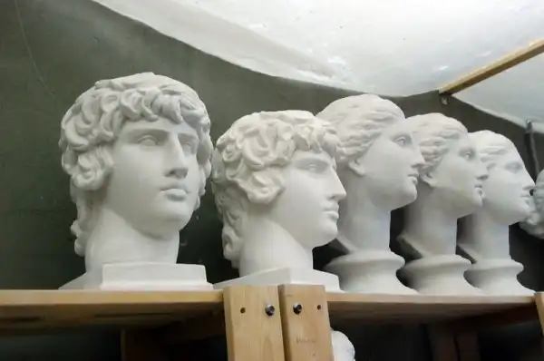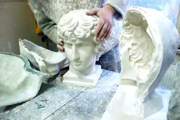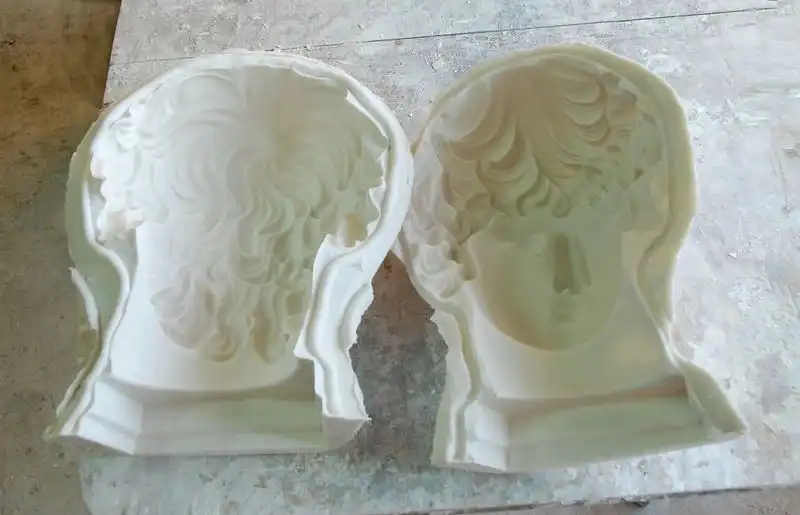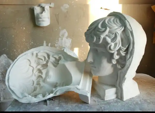 Гипс — удивительный материал, который нашел применение в самых разных отраслях — в строительстве, в археологии, в медицине, ну в изобразительном искусстве конечно. Например, если кто не знает, Изобразительный музей имени Пушкина, цветаевский, создавался как музей слепков. И собственно, почти все копии с античных статуй, собранных в нем и выглядящих как бронзовые либо мраморные — это гипсовые отливки, снятые по определенной технологии в натуральную величину и тонированные под бронзу или мрамор, Например, все, что находится в греческом дворике, в римском зале, в греческом, черная колонна Траяна, огромный портала собора во Фрейберге, надгробия, конные статуи кондотьеров (тех, что гнались за героем Никулина в фильме «Старики-разбойники»), да тот же Давид Микеланджело в одном из главных залов ГМИИ.