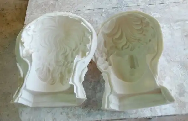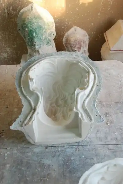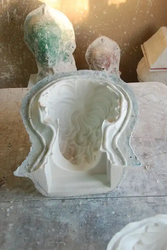 Многие люди думают, что их лепят из гипса :-). И вообще у людей не имеющих представление о гипсе, глубоко засело мнение что из гипса лепят... Время схватывания гипсового раствора 5-10 минут. А фаза, когда раствор хоть немного напоминает глину, и пригоден собственно для лепки, длится менее минуты. Ну и что за такой период времени можно успеть? Поэтому открою многим страшную тайну, что все гипсовые изделия льют в специальные формы. Они могут быть из различных материалов, и из гипса тоже. Мы используем формы из специального силикона. Они многоразового использования. Силиконовая форма выглядит вот так. Как делаются формы, это тема для отдельного мастер-класса, если интересно напишу об этом позже. Любопытно, что, когда смотришь на вогнутую форму, видишь выпуклое изображение. Почему так получается, не знает никто. Может кто в комментариях подскажет?