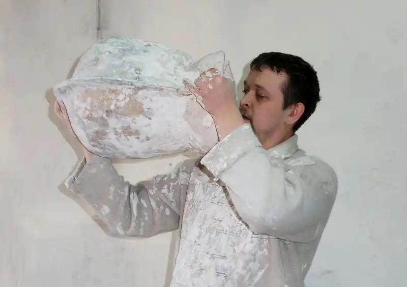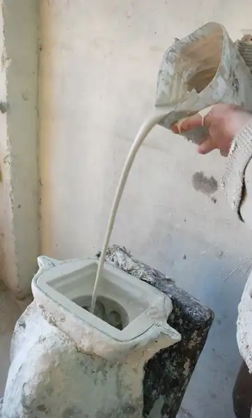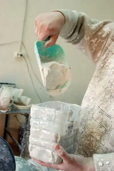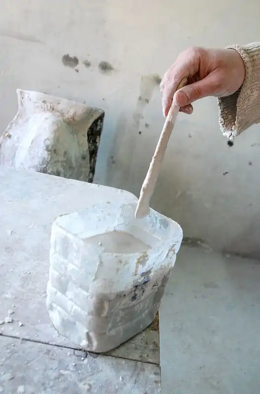 Тщательно крутим форму, чтобы гипс равномерно распределился, осел на стенках формы ровным слоем.