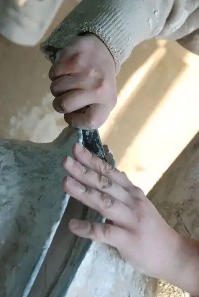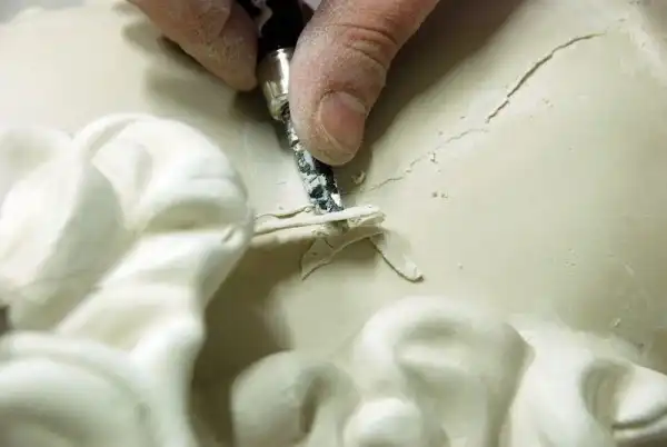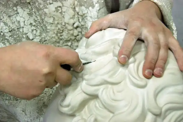 Здесь он проведет несколько дней. Гипс ведь только схватывается быстро, а сохнет, на удивление долго, в зависимости от величины изделия и толщины его стенок, а так же окружающей температуры и уровня влажности. Когда он высохнет, потеряет до половины веса сырого изделия, и станет белоснежным. Только в таком состоянии производится окончательная шлифовка по шву.