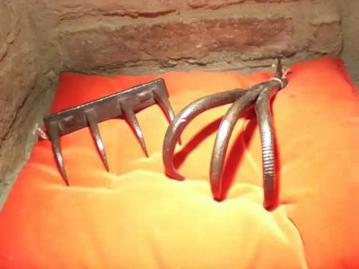 Это устройство для пытки обычно использовалось в Европе во время Средневековья. Используемое, чтобы разрывать кожу жертвы, это оружие могло легко разорвать через что-угодно, включая мышцы и кости. Жертва связывалась, иногда публично, а затем мучители начинали калечить её. Обычно начинали с конечностей, шея и туловище всегда сохранялись на завершение.