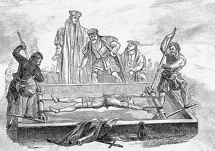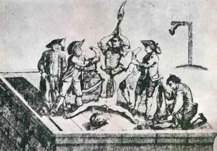 Казнь за государственную измену в Англии, с повешением, растягиванием и четвертованием, была обычным явлением в период средневековых времен. Несмотря на то, что пытка была отменена в 1814, эта форма казни стала причиной гибели сотен, возможно даже тысяч, людей.