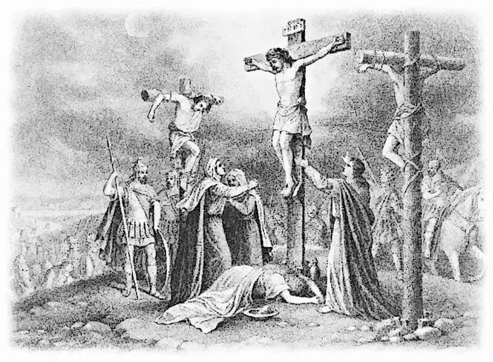 Этот древний метод казни — один из самых известных, очевидно из-за распятия Иисуса Христа. Жертву подвешивали за руки на крест, заставляя висеть там, пока не наступит смерть, которая обычно занимала дни, пока жертва не умирала от жажды.