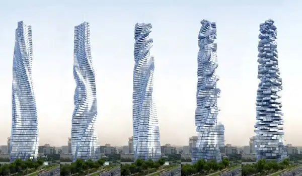 6. Вращающаяся башня. Дубай, Арабские Эмираты. Дубай в последние годы привлек к себе особое внимание бесконечным появлением чудес архитектуры, уже построенных, либо запланированных на ближайшее будущее. Большинство из этих сооружений величественные и высокие, но некоторые еще и экологически чистые. Вращающаяся башня - здание, которое по праву может называться очередным чудом света. Оно меняет свою форму в зависимости от положения луны или под настроение владельца.