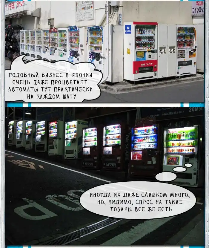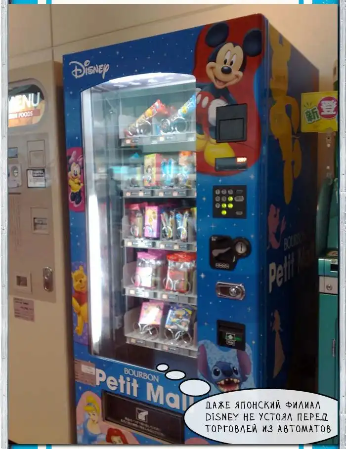 Развитие вендинговых автоматов в Японии поражает своим размахом, ведь по официальной статистике, там на одного жителя приходится примерно один специальный торговый автомат. Таким образом в Японии профессия продавца становится практически не актуальной.